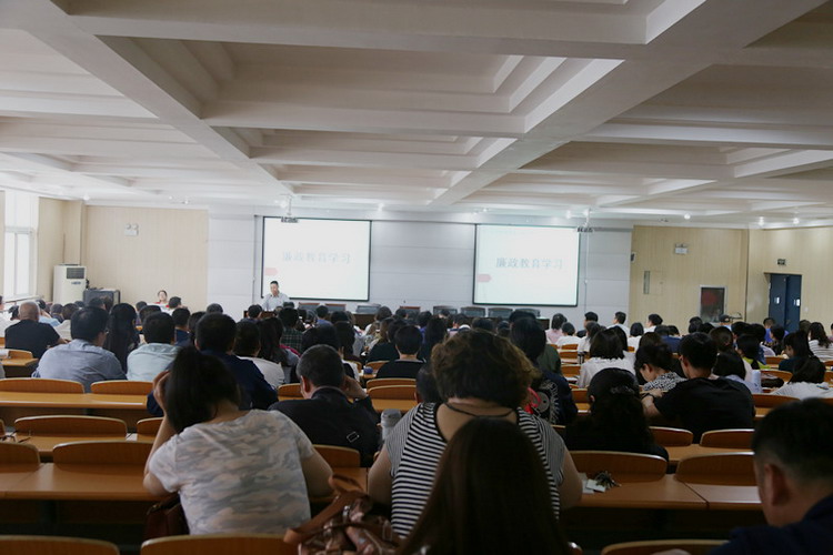5月14日下午5:00,我校在1号实训楼2楼多功能报告厅组织全体教职工开展廉政教育学习大会。